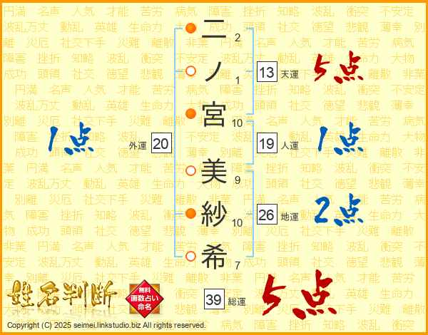 二ノ宮美紗希さんの総運は39画の5点!
