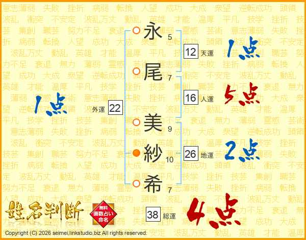 永尾美紗希さんの総運は38画の4点!