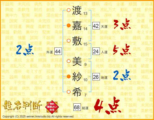 渡嘉敷美紗希さんの総運は68画の4点!