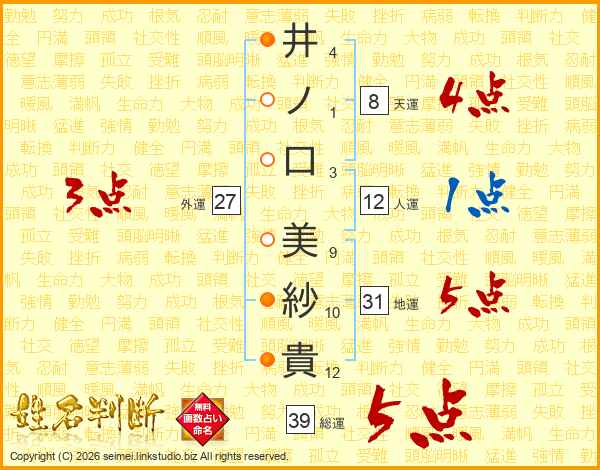 井ノ口美紗貴さんの地運は31画の5点!