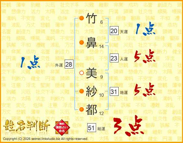 竹鼻美紗都さんの人運は23画の5点!