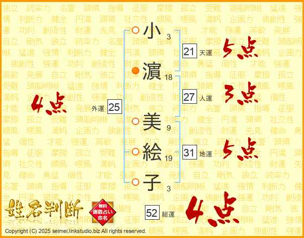小濵美絵子さんの総運は52画の4点!