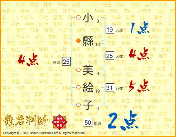 小(3画)縣(16画) 美(9画)絵(19画)子(3画)