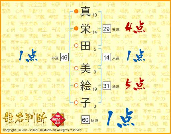 真(10画)栄(14画)田(5画) 美(9画)絵(19画)子(3画)