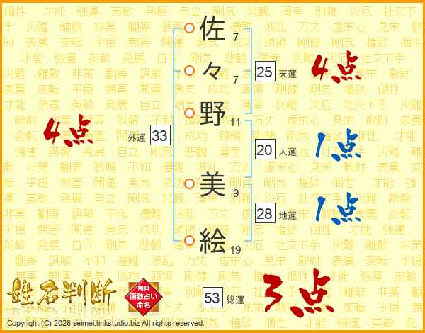 佐々野美絵さんの天運は25画の4点!