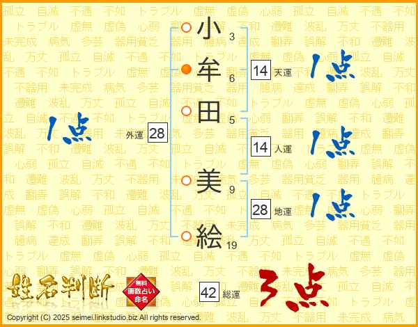 小(3画)牟(6画)田(5画) 美(9画)絵(19画)