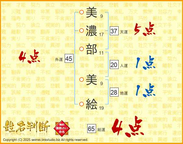美濃部美絵さんの天運は37画の5点!