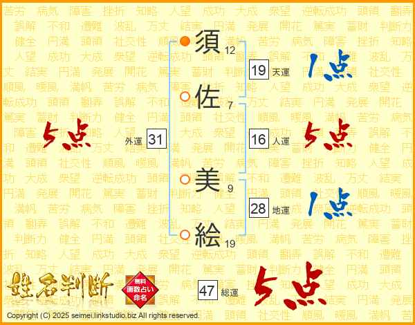 須(12画)佐(7画) 美(9画)絵(19画)