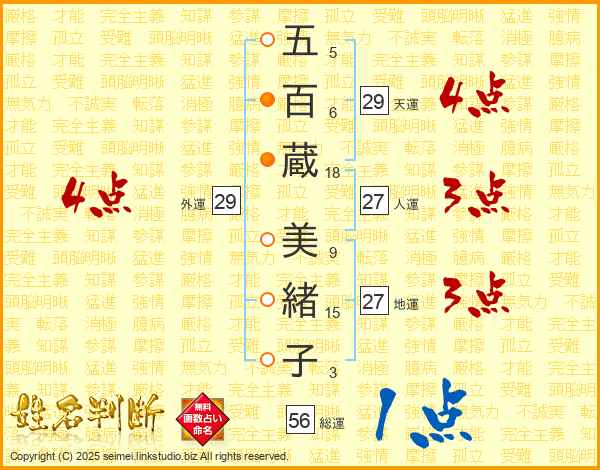 五百蔵美緒子さんの外運は29画の4点!