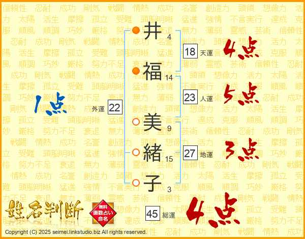 井福美緒子さんの総運は45画の4点!