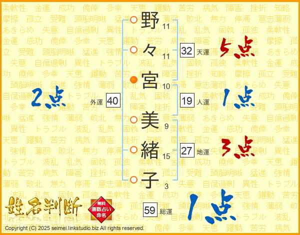野々宮美緒子さんの総運は59画の1点!