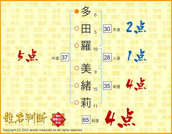 多田羅美緒莉さんの総運は65画の4点!
