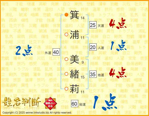 箕浦美緒莉さんの天運は25画の4点!