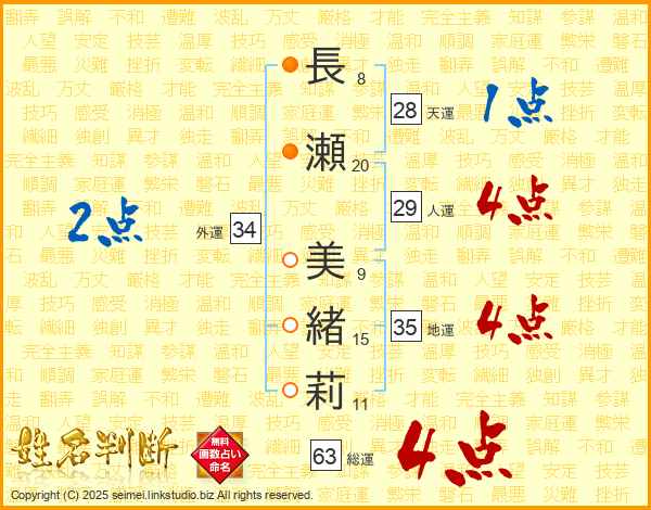 長瀬美緒莉さんの総運は63画の4点!