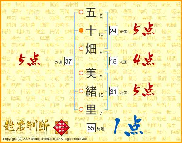 五十畑美緒里さんの総運は55画の1点!