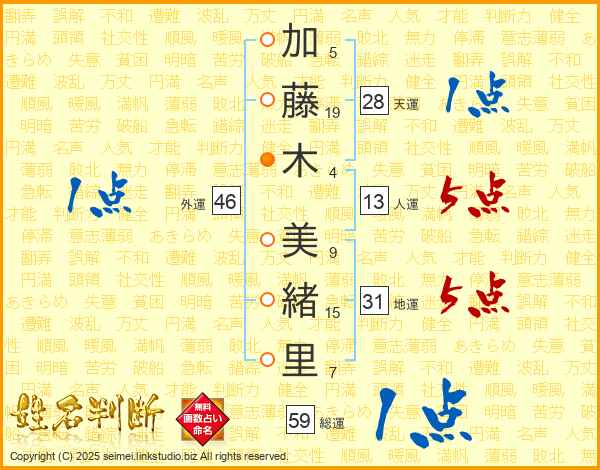 加藤木美緒里さんの地運は31画の5点!