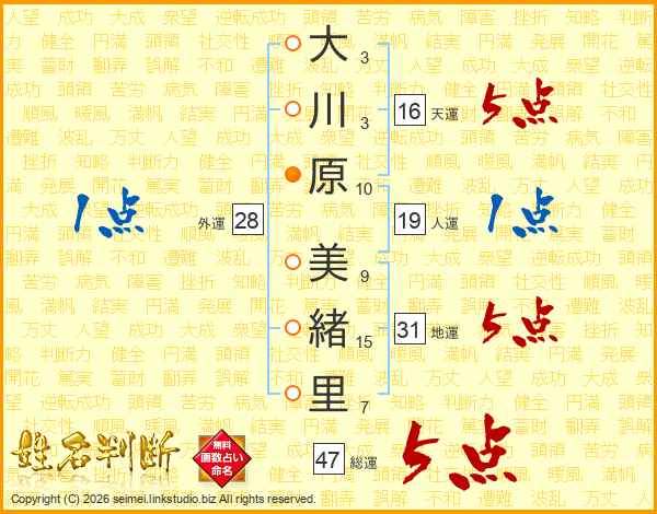 大川原美緒里さんの総運は47画の5点!