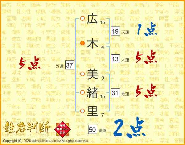 広木美緒里さんの外運は37画の5点!
