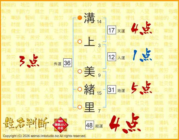 溝上美緒里さんの天運は17画の4点!