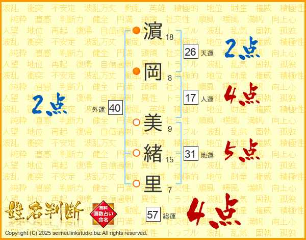 濵岡美緒里さんの地運は31画の5点!