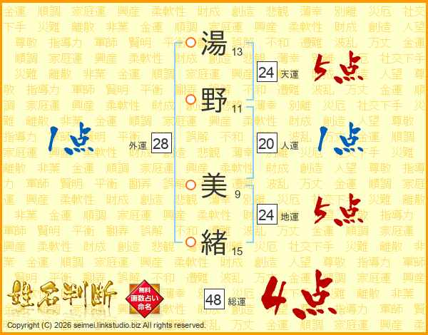 湯野美緒さんの地運は24画の5点!