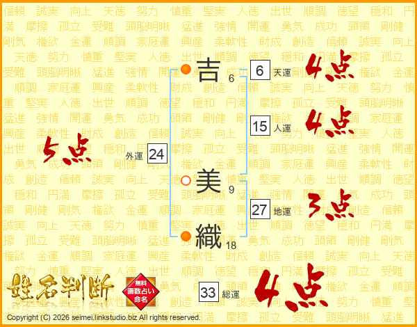 吉美織さんの総運は33画の4点!