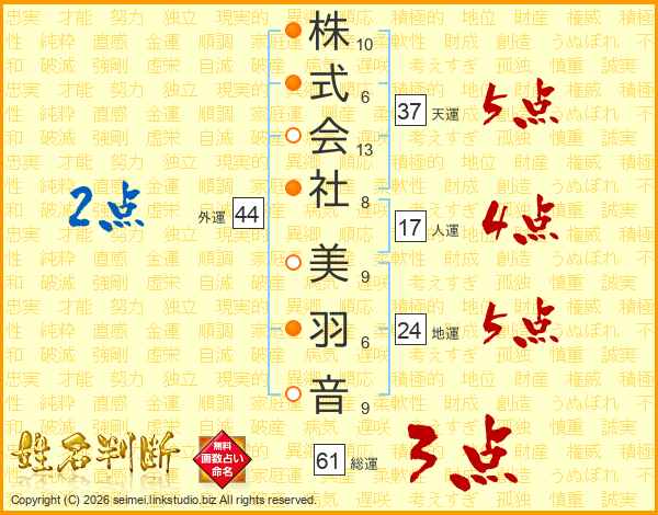 株式会社美羽音さんの天運は37画の5点!