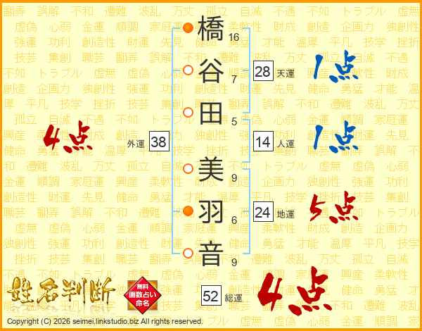 橋谷田美羽音さんの総運は52画の4点!