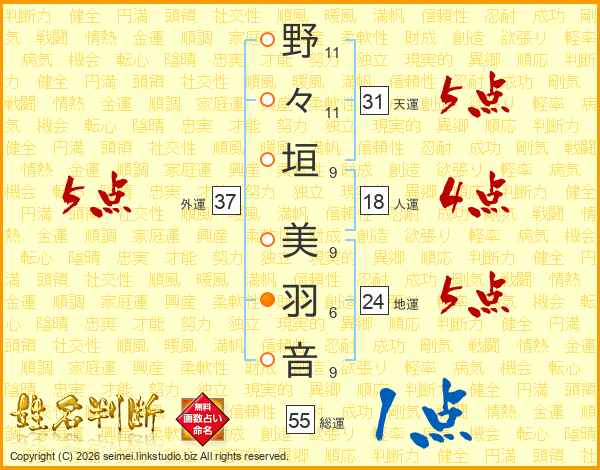 野々垣美羽音さんの天運は31画の5点!