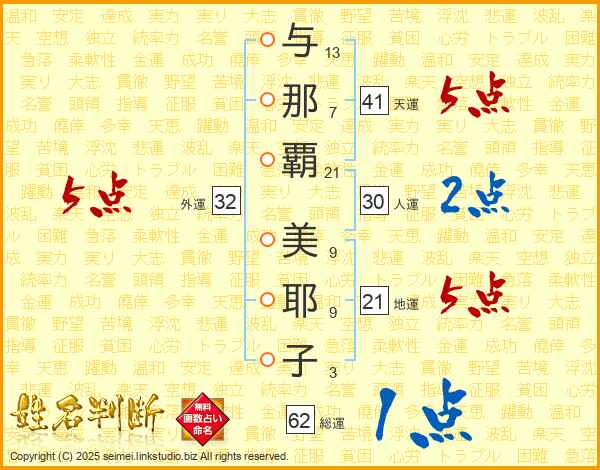 与那覇美耶子さんの天運は41画の5点!