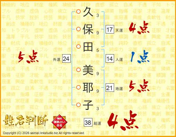 久保田美耶子さんの総運は38画の4点!