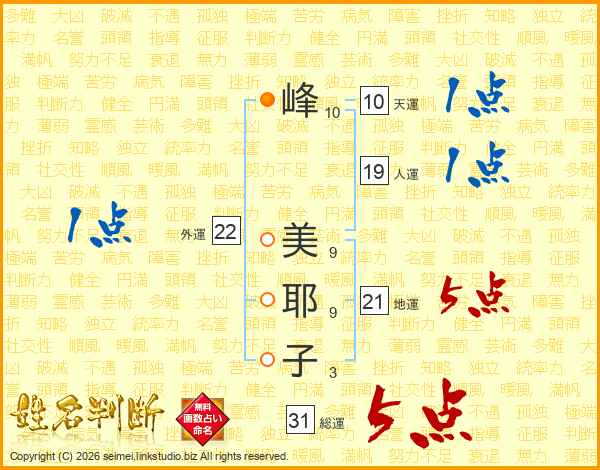 峰美耶子さんの総運は31画の5点!