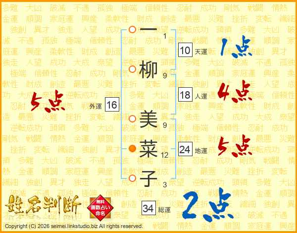 一柳美菜子さんの総運は34画の2点!