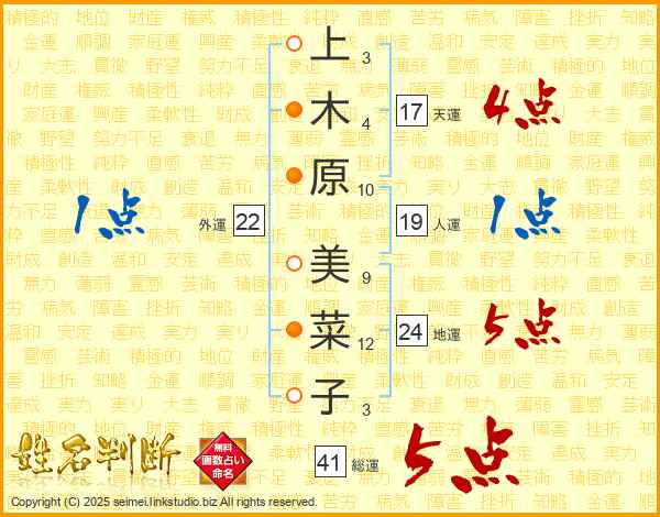 上木原美菜子さんの総運は41画の5点!