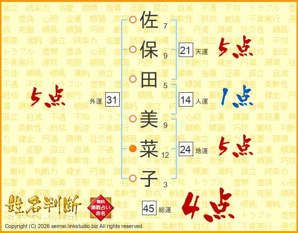 佐保田美菜子さんの総運は45画の4点!