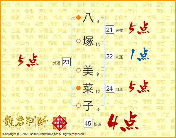 八塚美菜子さんの総運は45画の4点!