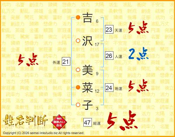吉沢美菜子さんの総運は47画の5点!