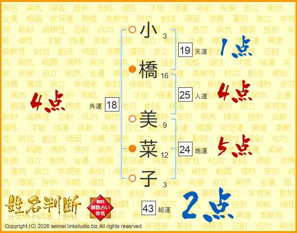小橋美菜子さんの総運は43画の2点!