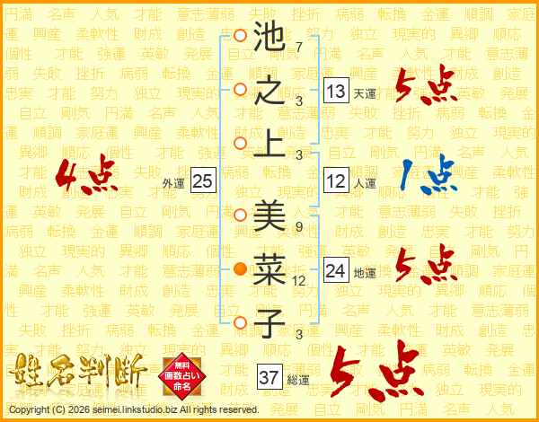 池之上美菜子さんの総運は37画の5点!