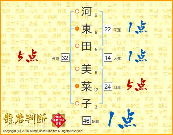河東田美菜子さんの総運は46画の1点!