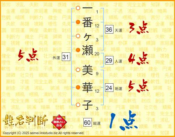 一番ヶ瀬美華子さんの外運は31画の5点!