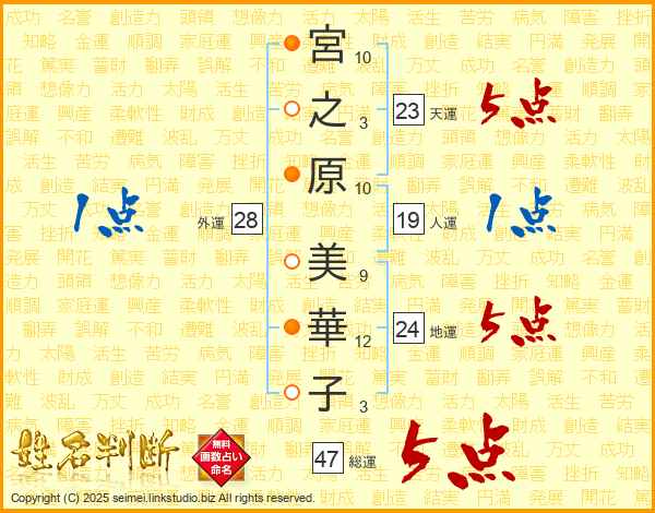 宮之原美華子さんの総運は47画の5点!