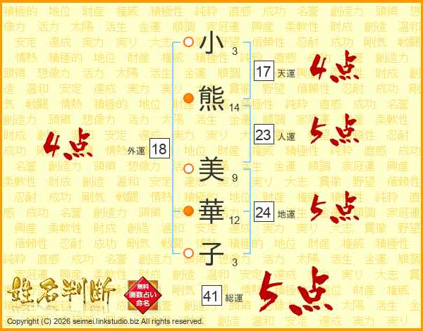 小熊美華子さんの総運は41画の5点!