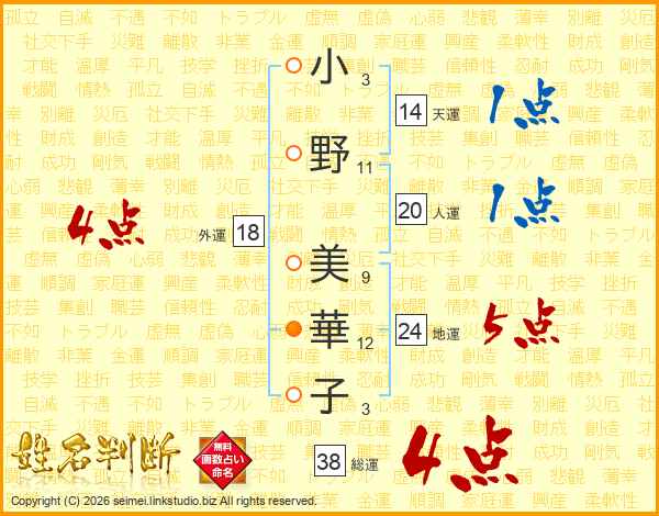 小野美華子さんの総運は38画の4点!