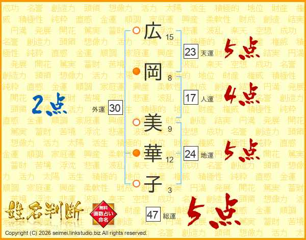 広岡美華子さんの総運は47画の5点!