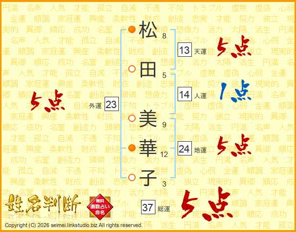 松田美華子さんの総運は37画の5点!