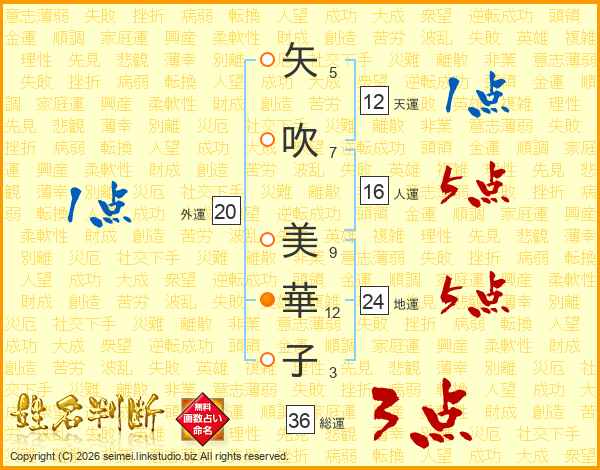 矢(5画)吹(7画) 美(9画)華(12画)子(3画)