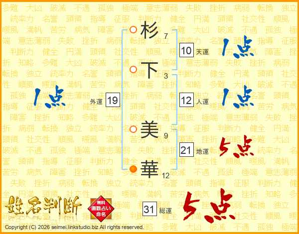 杉下美華さんの総運は31画の5点!