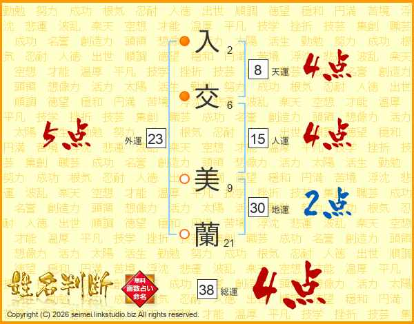 入交美蘭さんの総運は38画の4点!
