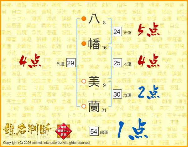 八幡美蘭さんの総運は54画の1点!